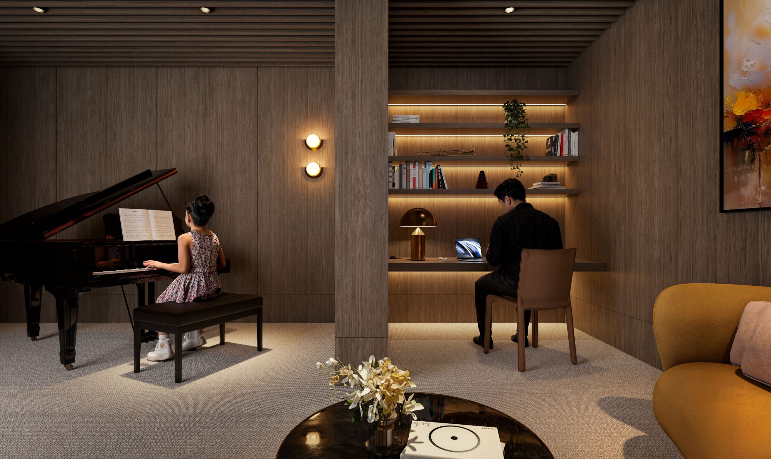 The Club Olia offering is tailored to meet the needs of a discerning resident. As purveyors of culture, spaces designed for intellectual pursuits like music and study invite residents to curate their experience of luxury living.