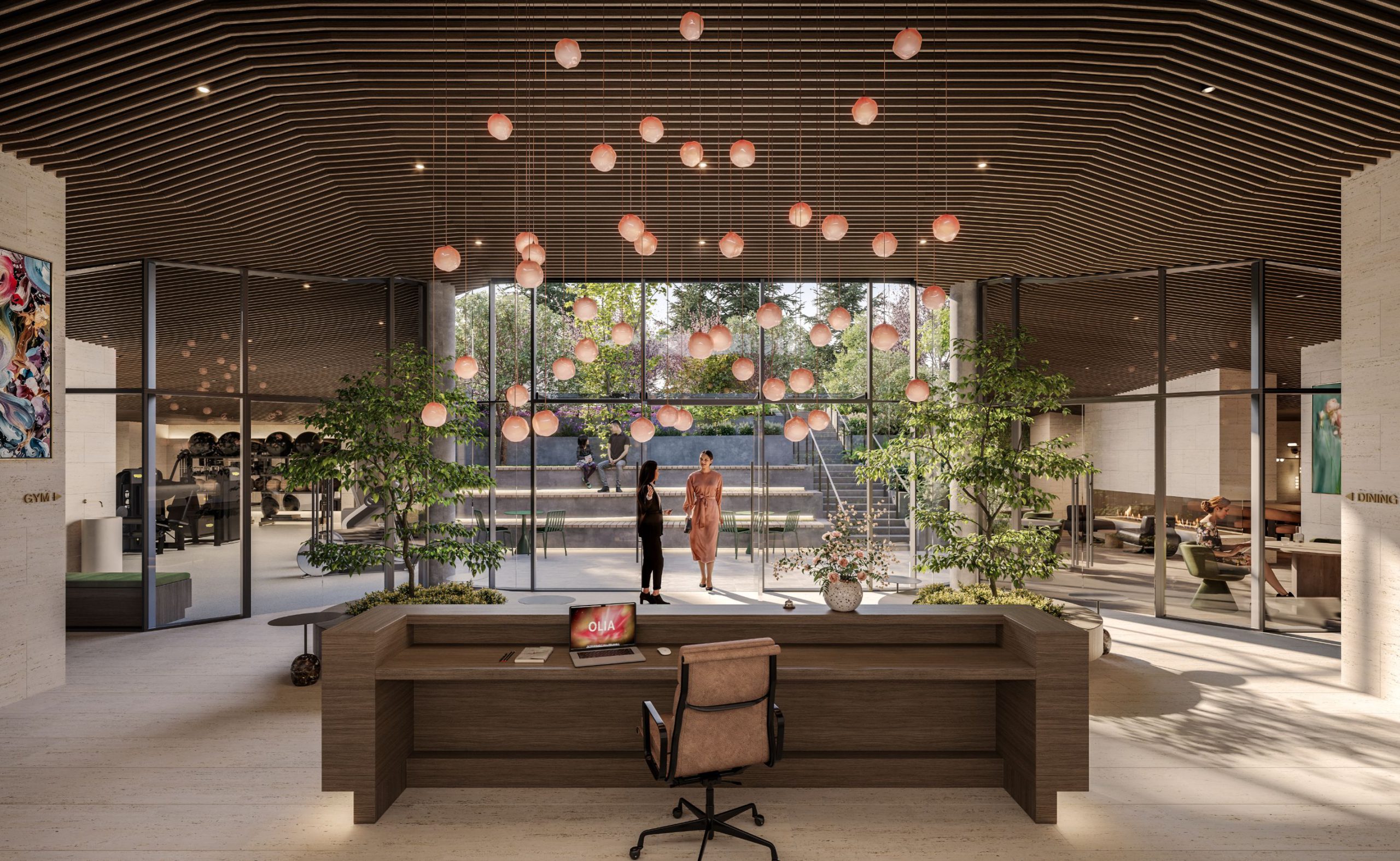 From personal training sessions to self-guided routines, Olia residents can enjoy the privacy of this aspirational wellness space. Floor-to-ceiling windows invite in the natural light and beauty of the outdoors.